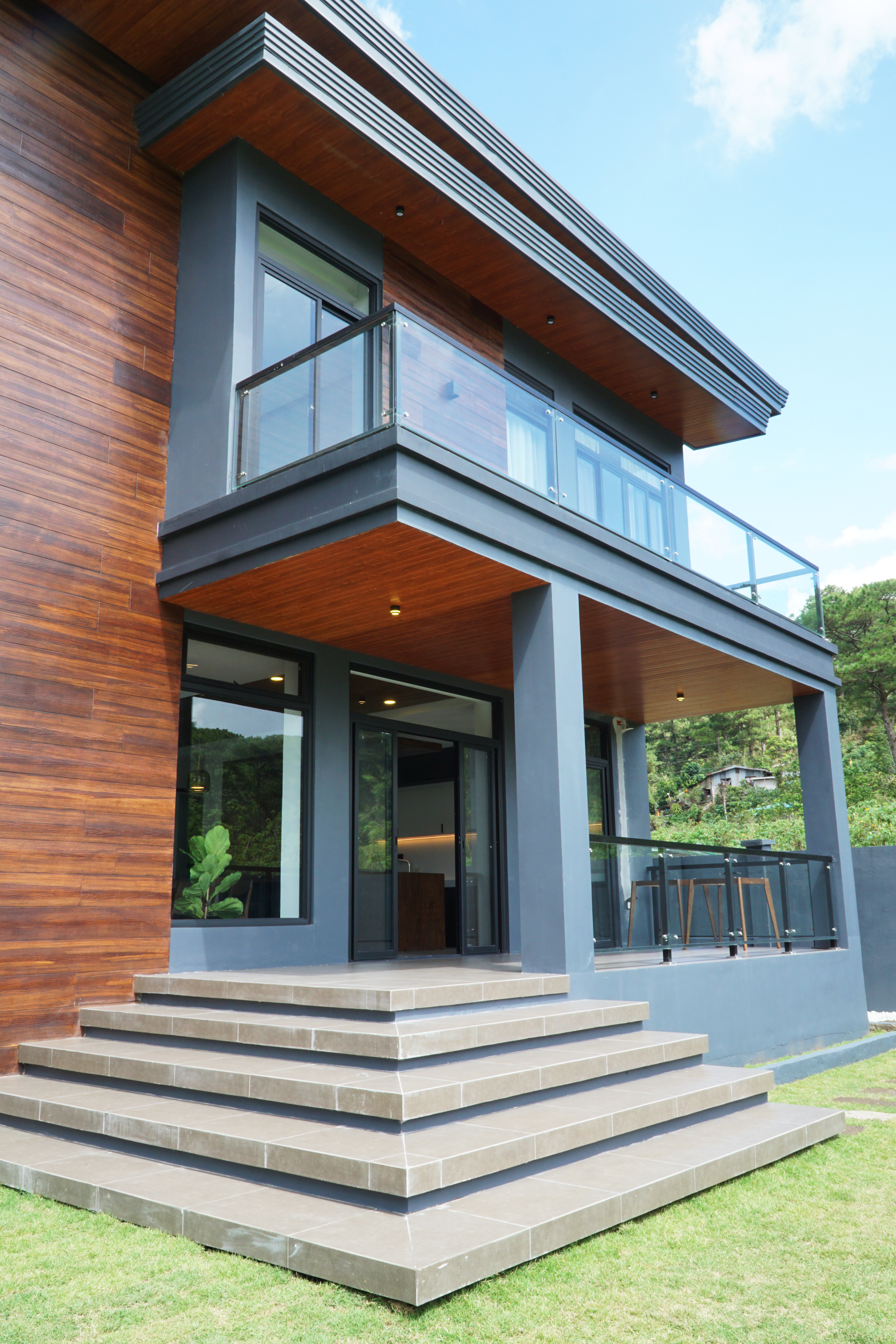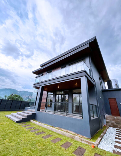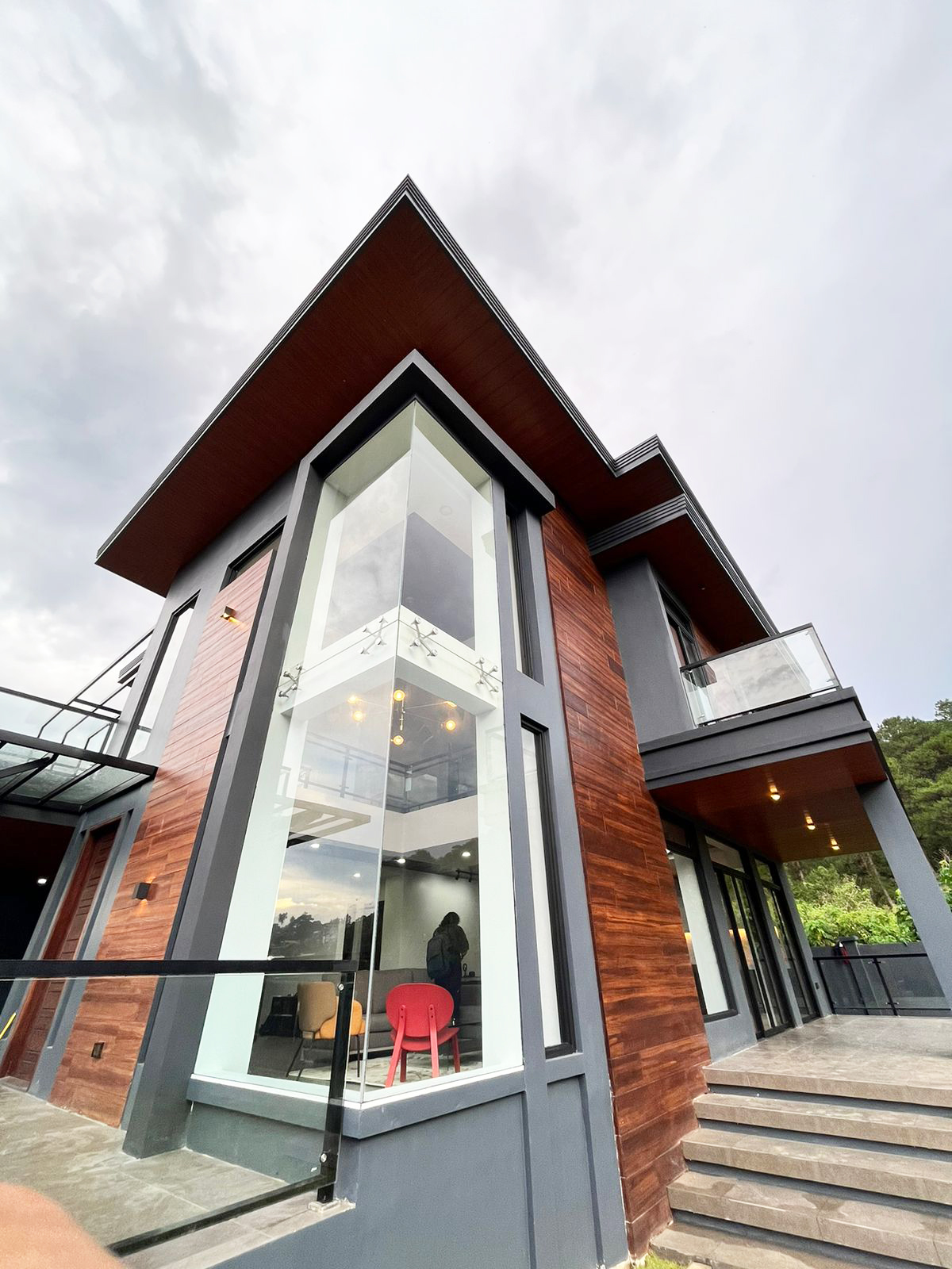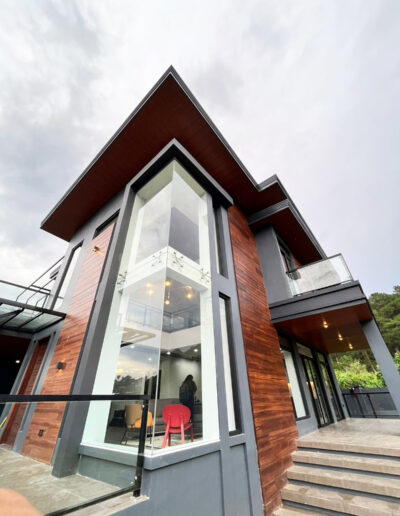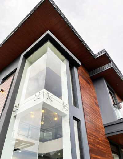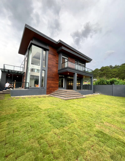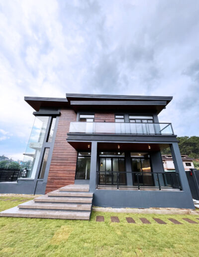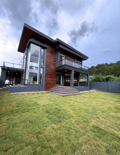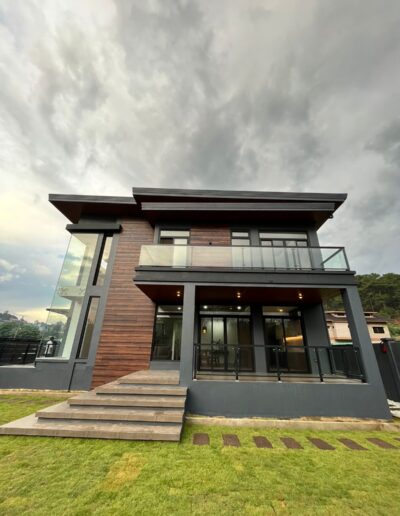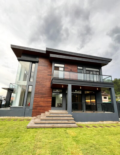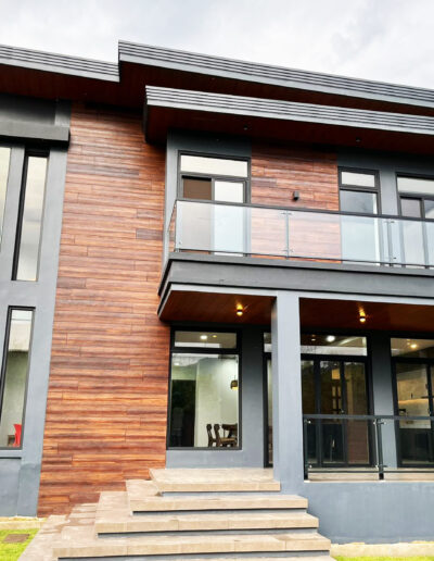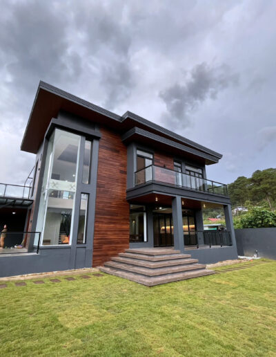 Embracing a modern and sleek aesthetic, our designs feature a striking combination of gray, black, and dark wood elements, creating a sophisticated and timeless look. The incorporation of large glass windows allows natural light to flood the spaces, creating a seamless connection between the indoors and outdoors.