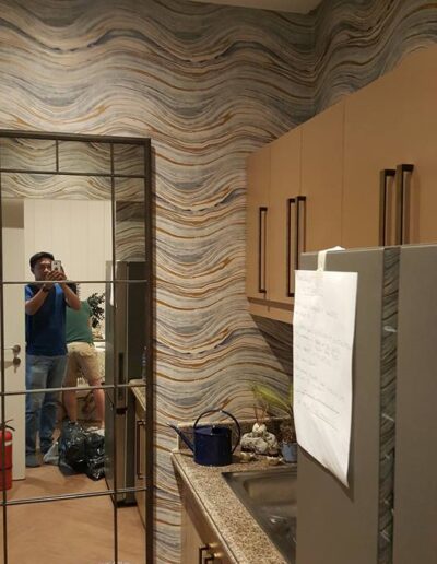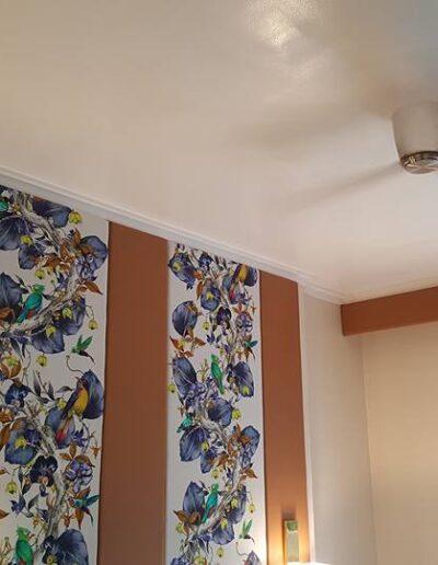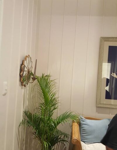 Condominium Fitout Outlook Drive, Baguio City Interiors by Geewel Fuster / Build by ODEC Builders Victorian interiors accentuated with nature-themed art pieces on matte white wooden walls.