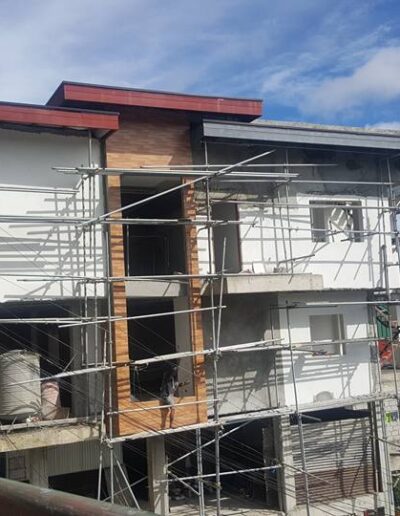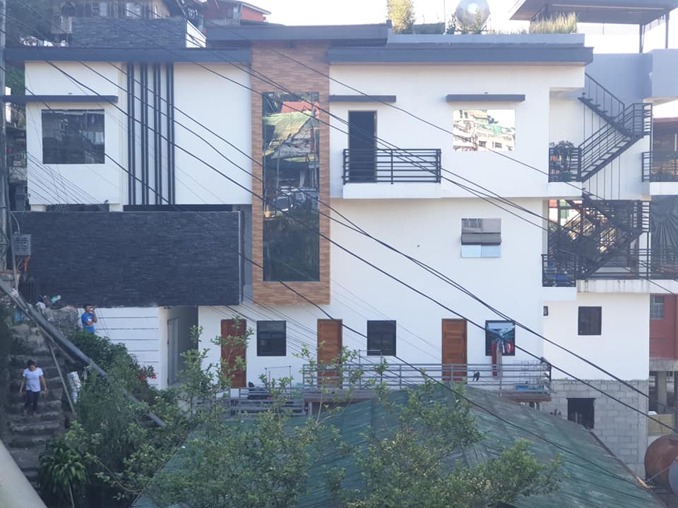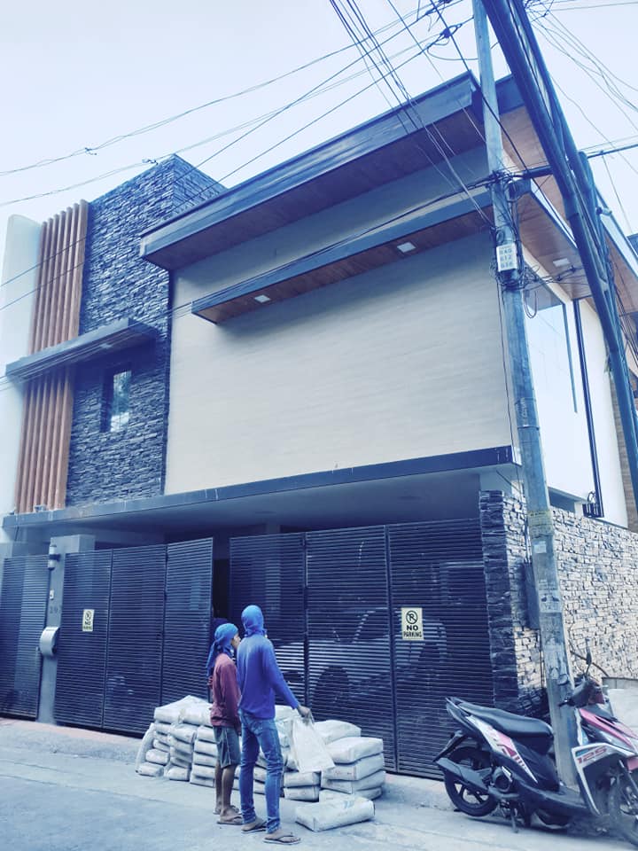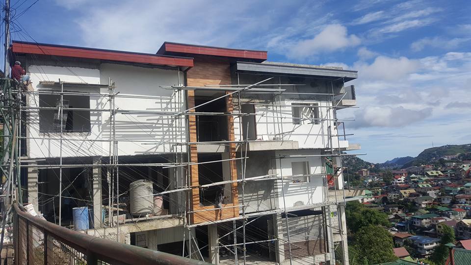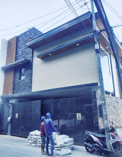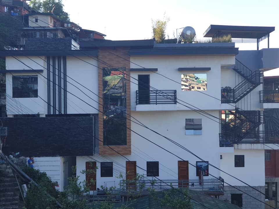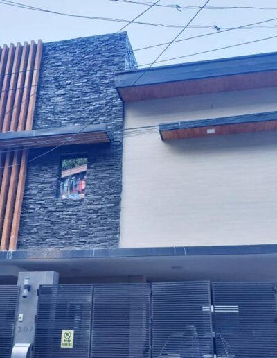 Modern Contemporary Located in Holy Ghost, Baguio City Two-storey home with two basements A modern contemporary exterior embellished with stone walls and wooden accents in varying earth tones.