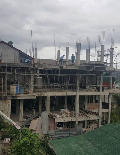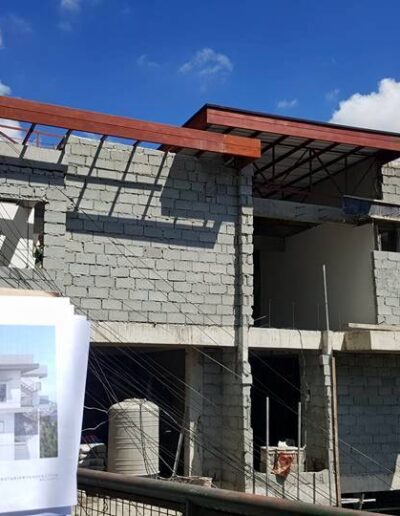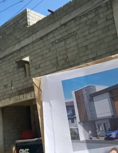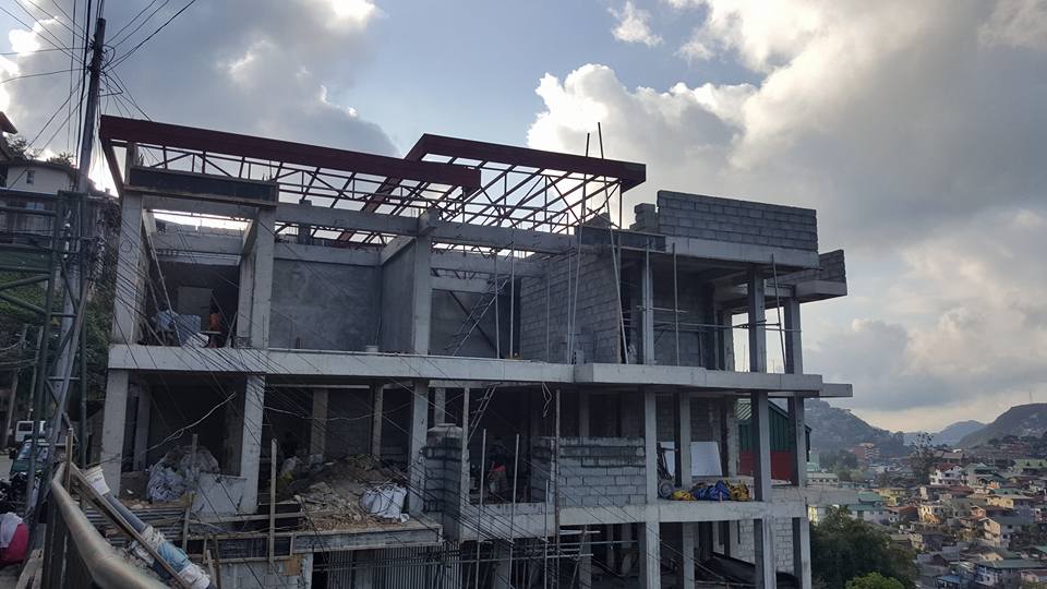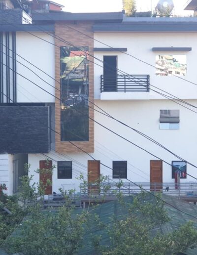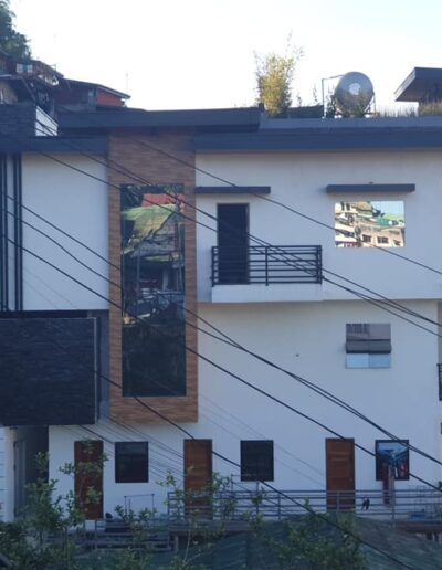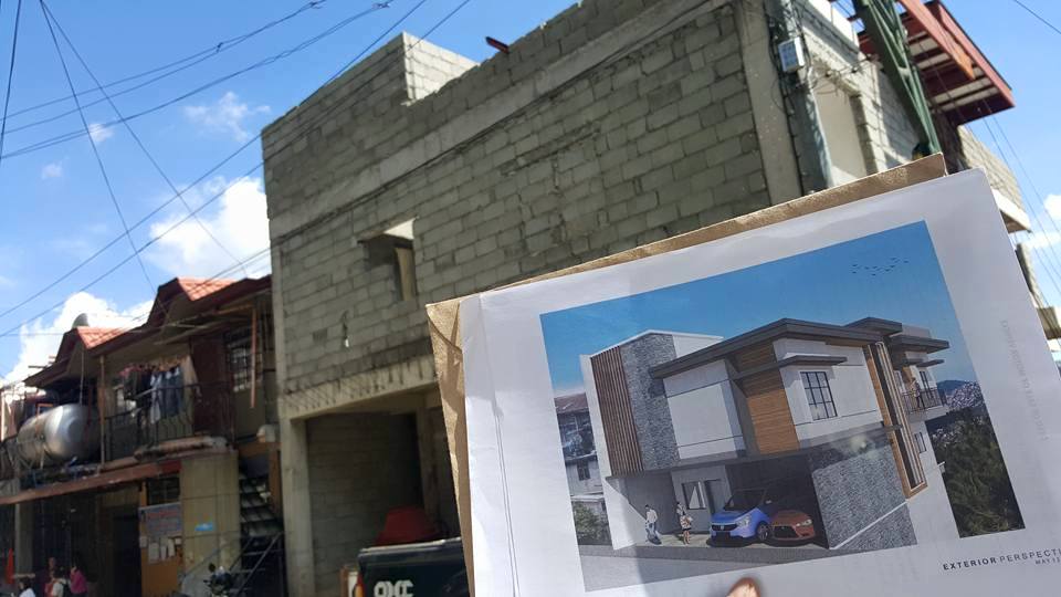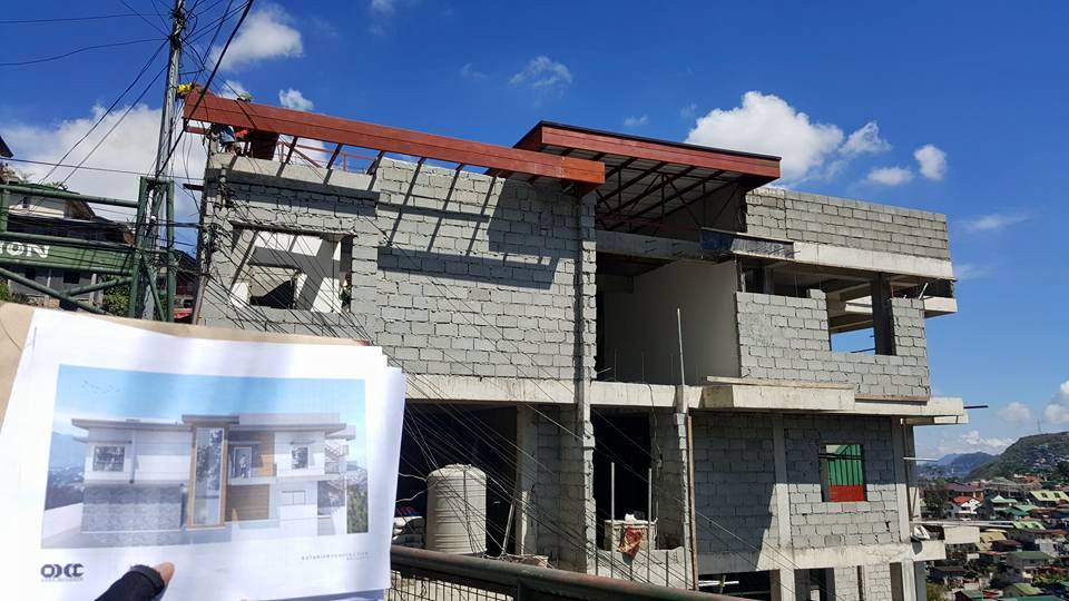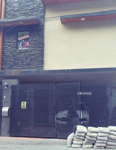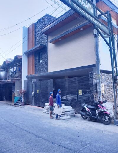Modern Contemporary Located in Holy Ghost, Baguio City Two-storey home with two basements A modern contemporary exterior embellished with stone walls and wooden accents in varying earth tones.