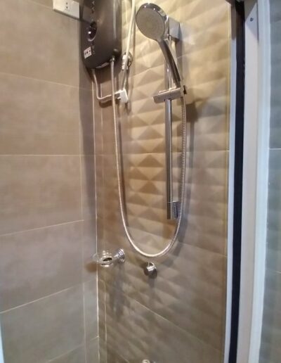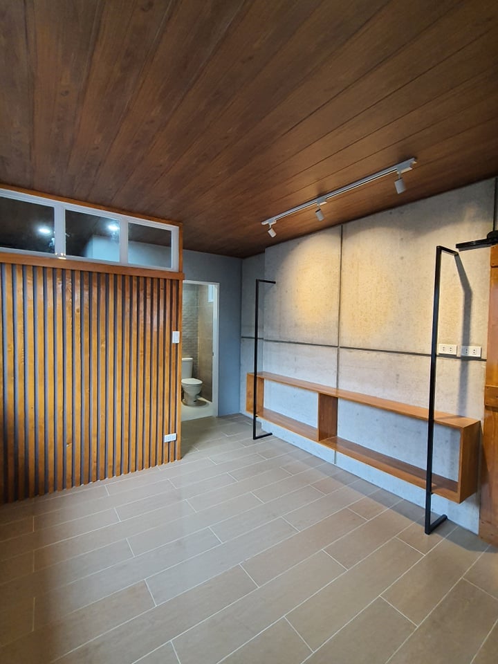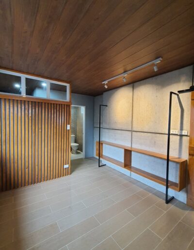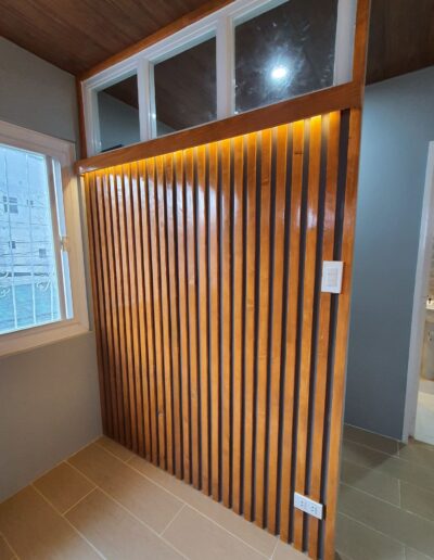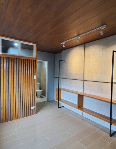 Modern Rustic Lower Cabinet Hill, Baguio City A 12sqm room renovation – the perfect balance of wood, stone, and open plan concept.